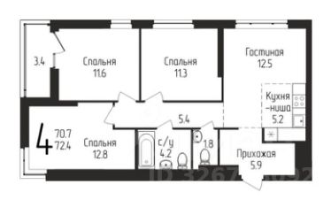 общая площадь: 72.4 кв.м.