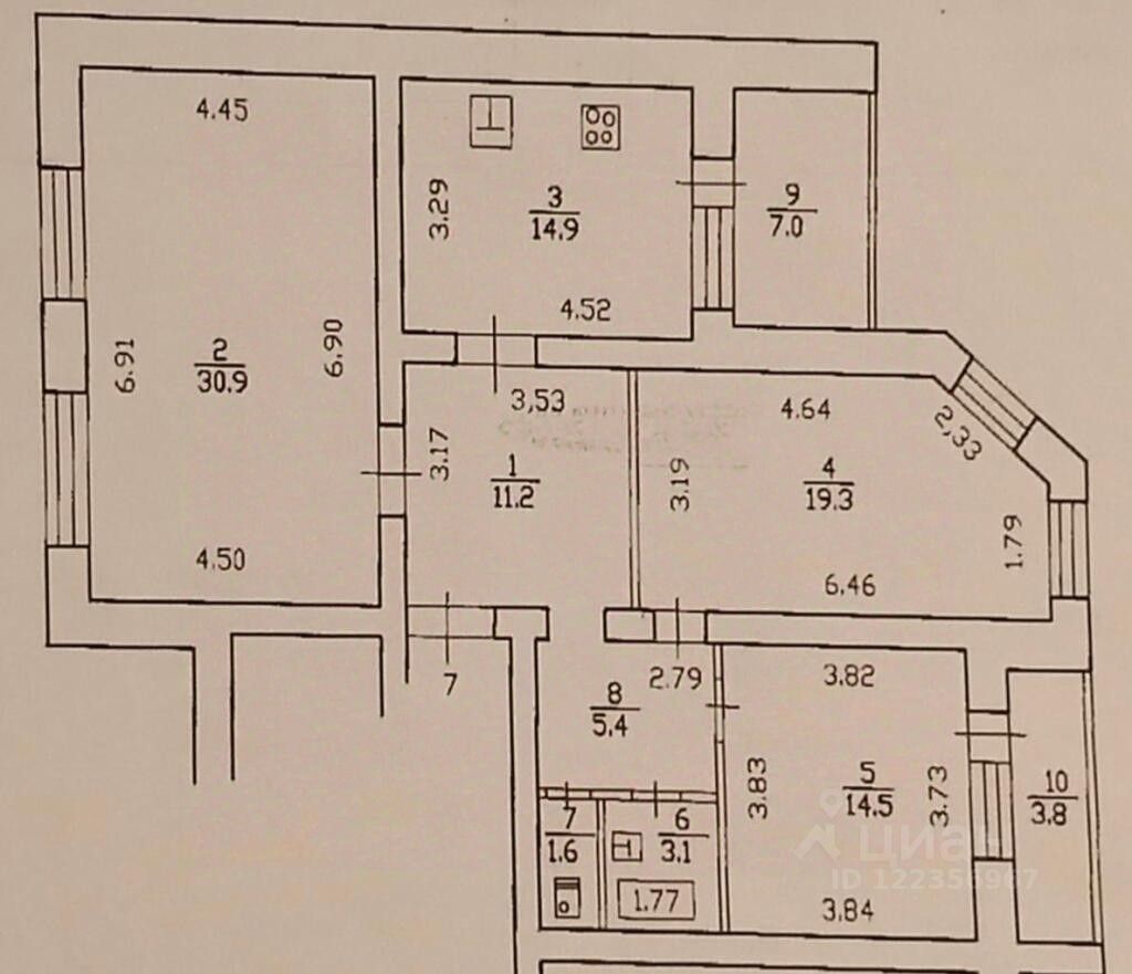 14,9 м²
