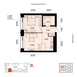 Жилая площадь 21.12 кв. м. от ГК "Первый Трест".