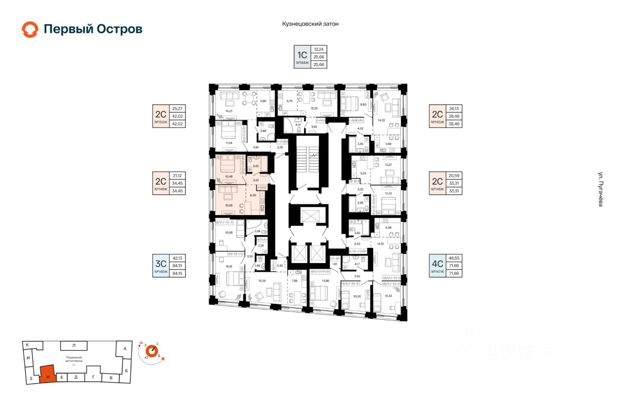Литер 1, Секция Ж. 22-й этаж 23- этажного жилого дома