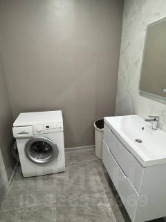 Новые унитаз, акрилловая ванна, зеркало с подсветкой и тумба. Стиральная машина Siemens.
