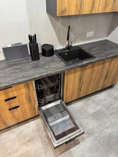 Кухня "Мария", новая техника-индукционная 3-х комфорочная плита, вытяжка, посудомоечная машина, духовка, гранитная раковина. Новые стол и стулья. Также остается микроволновая печь Bork и холодильник Samsyng, диван Pushe с удобным механизмом раскладывания "дельфин" и большой телевизор с тумбой.