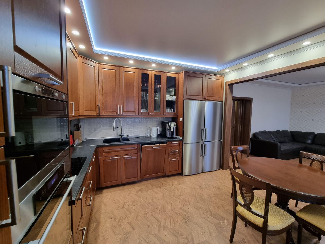 Кондиционер Mitsubishi с датчиком движения, бризер tion (приточная вентиляция), телевизор lg Oled; на кухне маленький Sony, межкомнатные двери Sofia, входная дверь Torex Professor, напольное покрытие пробка Granorte (Португалия), деревянные стеклопакеты.