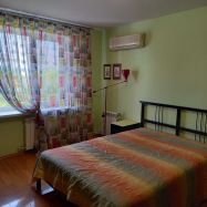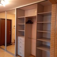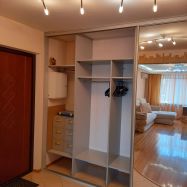 В одной из спален большая двуспальная кровать и так же установлен шкаф-купе до потолка-максимум места для хранения вещей .