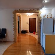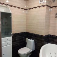 В квартире сделан качественный ремонт продуманный до мелочей. Полы из высококачественного паркета. В кухне на полу плитка, установлен шикарный кухонный гарнитур со встроенной техникой: духовой шкаф, микроволновая печь вытяжка, газ. плита, холодильник, стиральная машина, кухонный стол. В коридоре на полу плитка, установлен встроенный шкаф на всю стену. В сан. узле установлена качественная сантехника, на полу и на стенах плитка. Разводка регулируемого теплого пола на кухне и сан. узле.