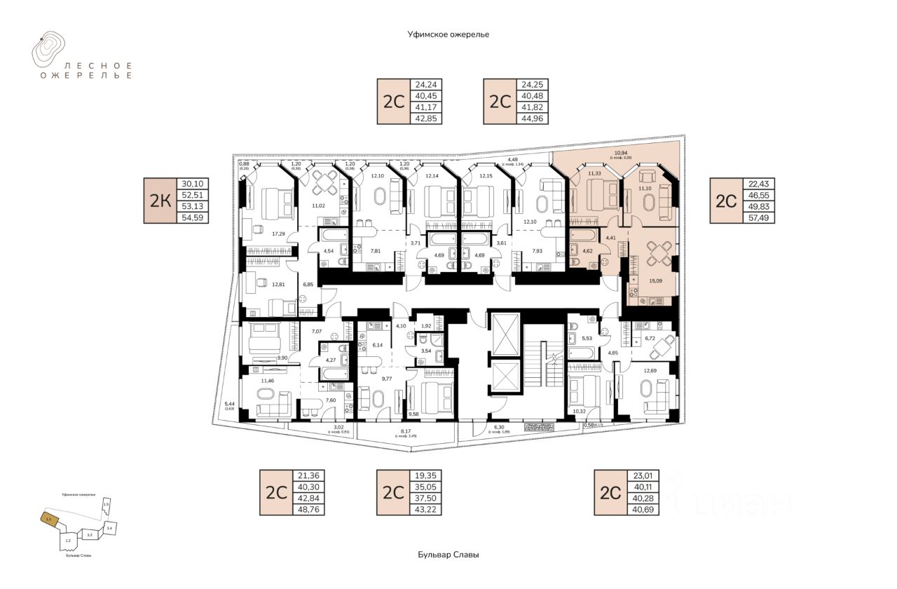 Литер 1, Секция 1. 4-й этаж 17- этажного жилого дома