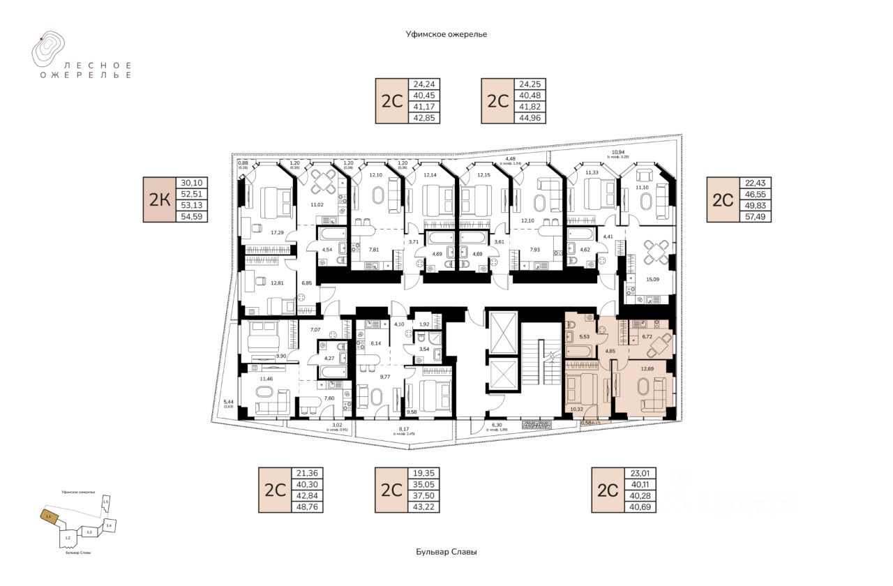 Литер 1, Секция 1. 4-й этаж 17- этажного жилого дома
