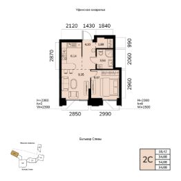 Общая площадь 34.08кв.м.;