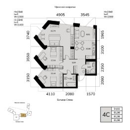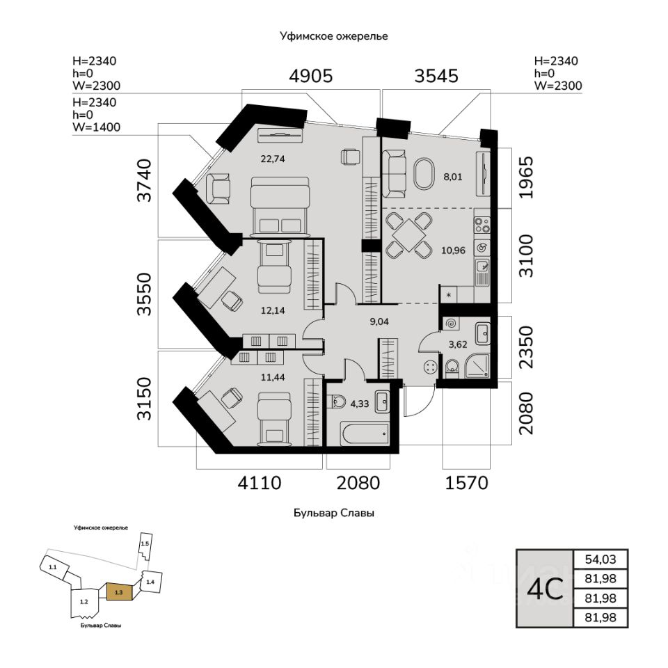 Общая площадь 81.98кв.м.;