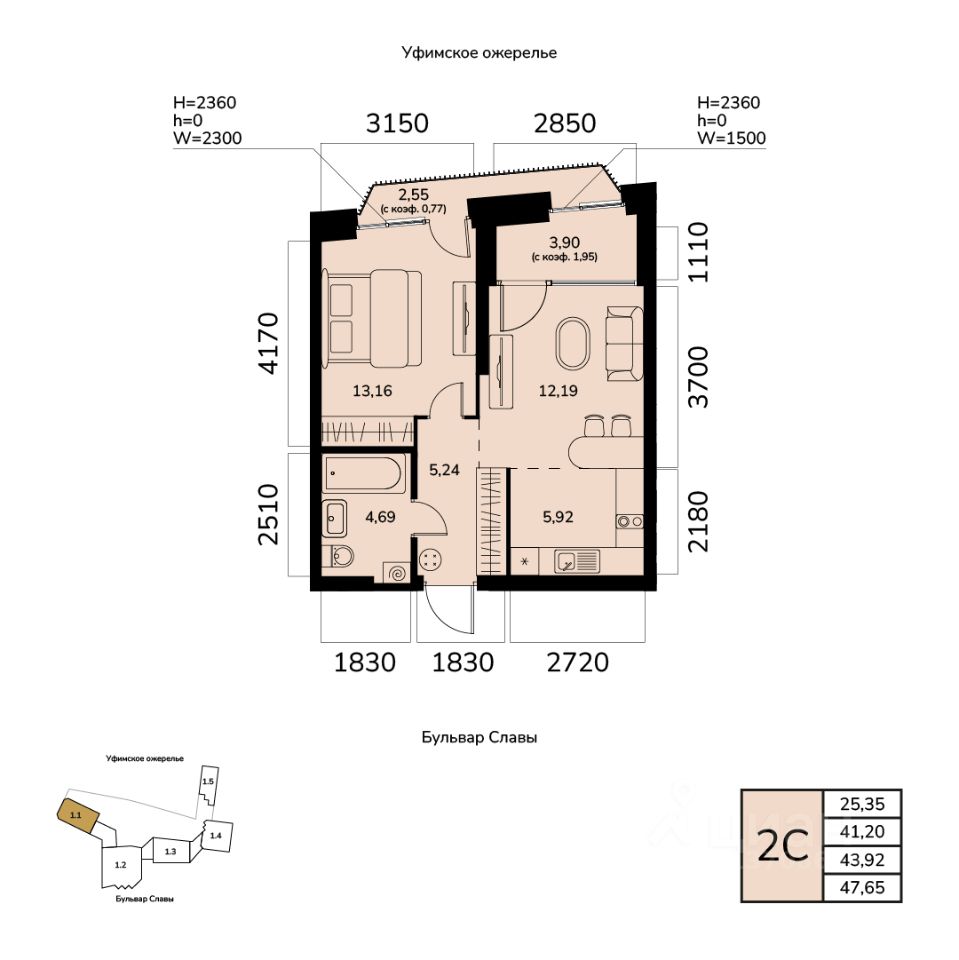 Жилая площадь 25.35 кв. м. от ГК "Первый Трест".