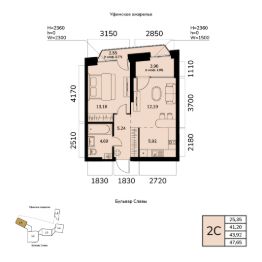 Общая площадь 43.92кв.м.;