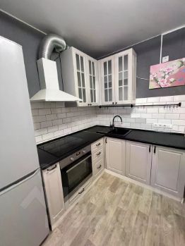 Из того, что указано на фотографиях, остаются: кухонные шкафы, встроенный духовой шкаф + варочная панель, вытяжка и кондиционер. Остальное по договоренности.