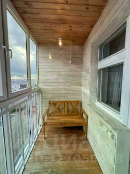 Лоджия площадью: 1,9 кв.м, с панорамным остеклением, отделкой деревом.