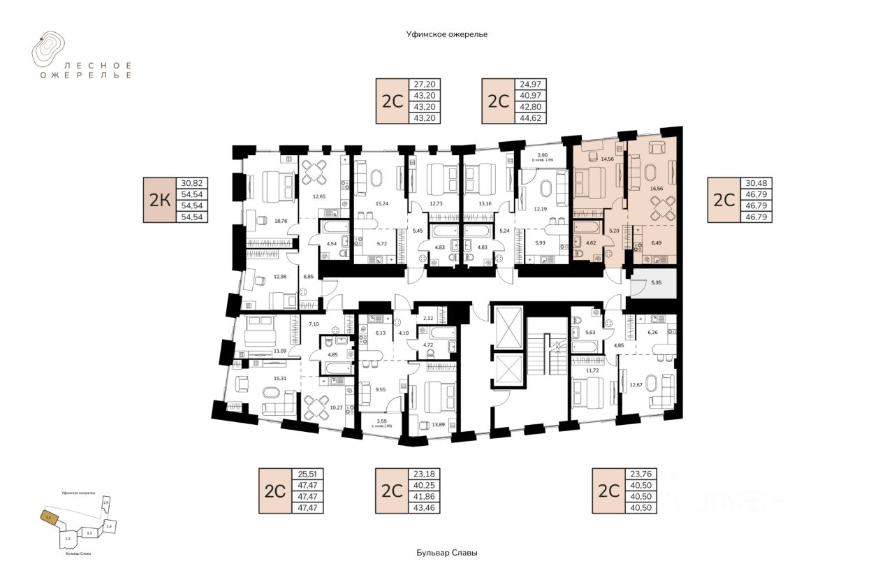 Литер 1, Секция 1. 2-й этаж 17- этажного жилого дома