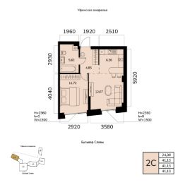 Общая площадь 41.13кв.м.;