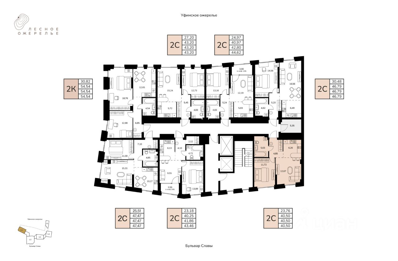 Литер 1, Секция 1. 2-й этаж 17- этажного жилого дома