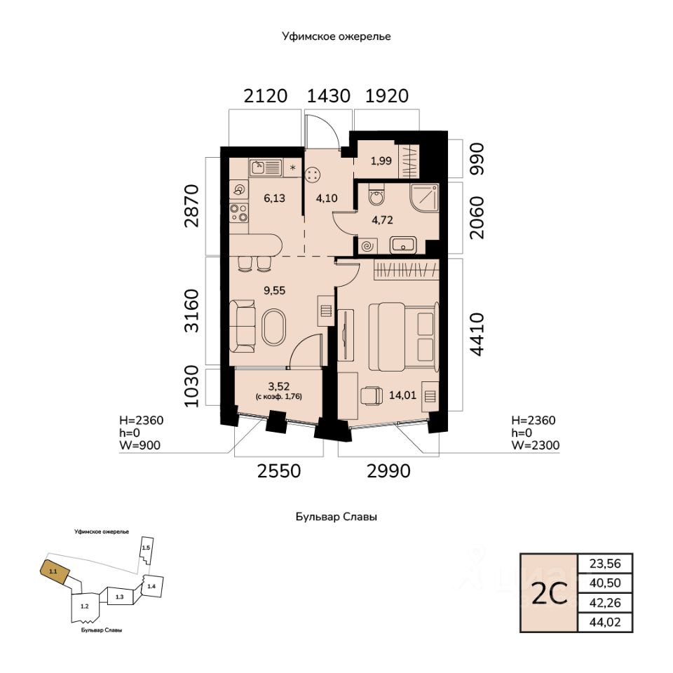 Жилая площадь 23.56 кв. м. от ГК "Первый Трест".
