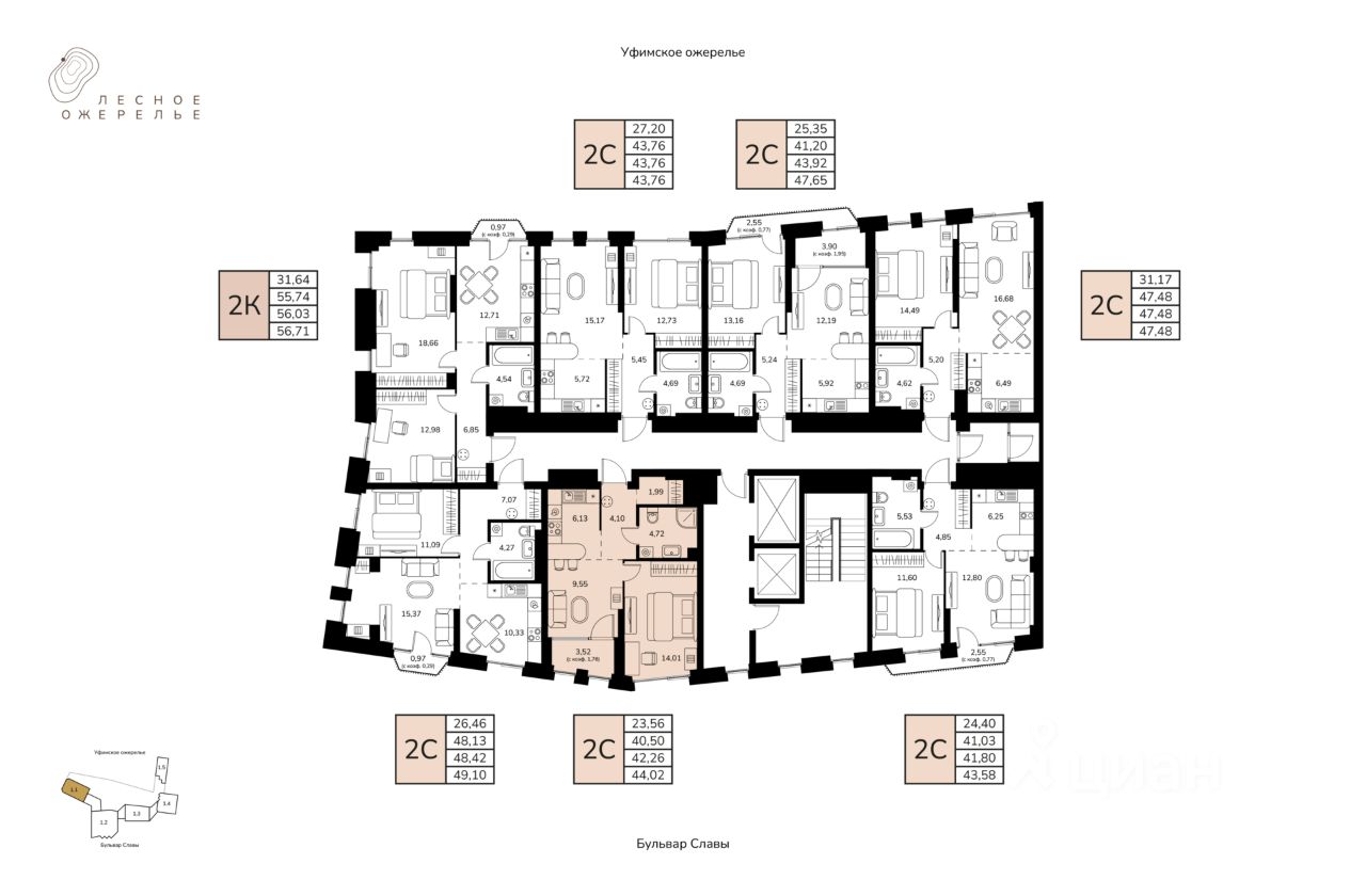 Литер 1, Секция 1. 3-й этаж 17- этажного жилого дома