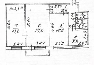 - Комнаты: 17,2 / 10,9 / 13,8 кв.м.