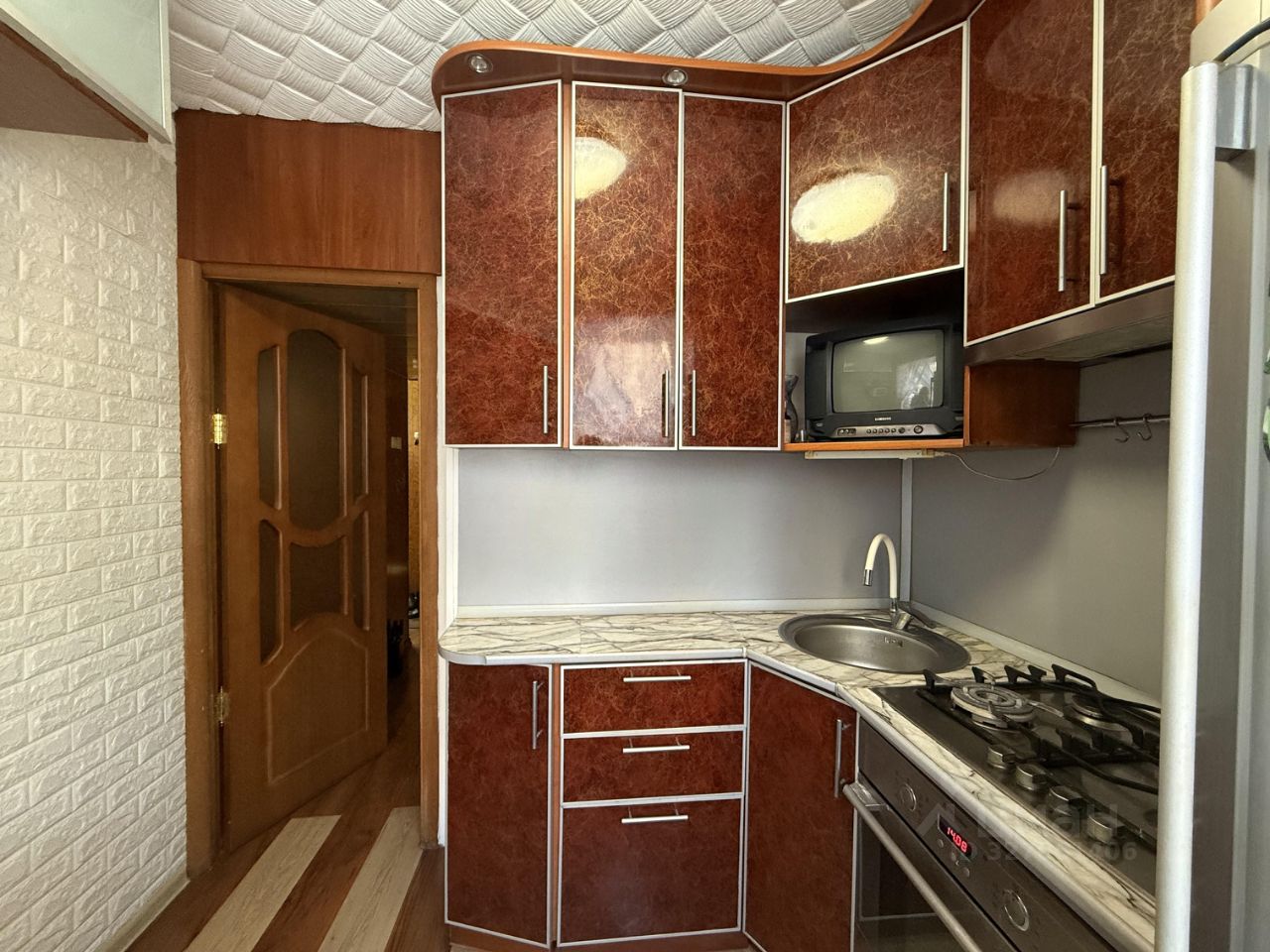 Новым владельцам остается кухонный гарнитур, шкаф-купе в холле.
