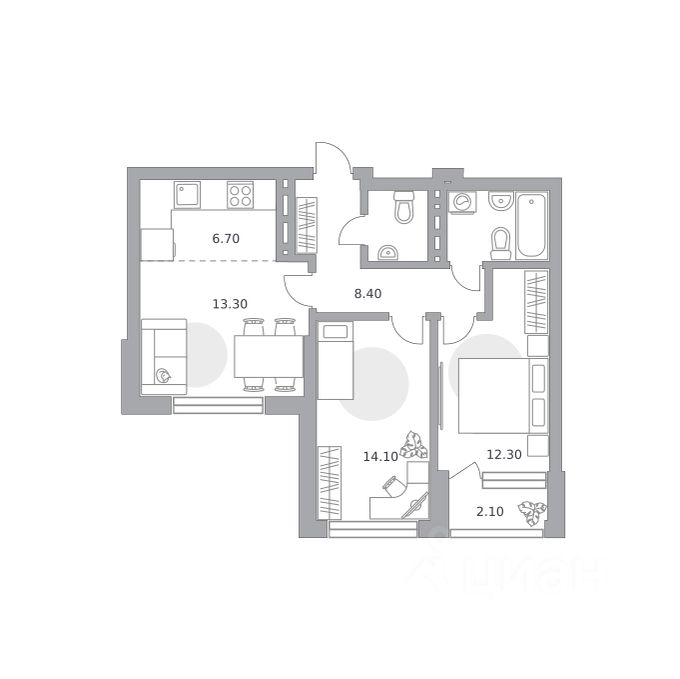 Продаётся 3-комнатная квартира 1067, площадью 64,30 м², на 13 этаже в ЖК "Лесная симфония" корпус 1. Стоимость — от 11604672 руб. Квартира без отделки, планировка односторонняя, окна во двор.
