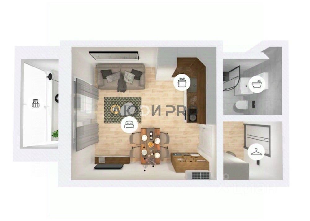 Актуальность формата студии для одиночных жильцов или молодой семьи;