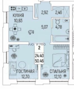 Площадь общая: 50.46 м2