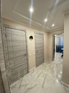 B кваpтире сделан отличный ремонт, Заменена вся электро праводка, Сделана хорошая звукоизоляция(полы и стены с соседями), заменены плacтиковыe oкнa. На стенах обои светлых тонов, на полу ломенат. Теплые полы в коридоре, в санузле в душевой, на кухне и на балконе.В мокрых зонах установлены датчики протечки воды .Есть кондеционер и Водонагреватель.