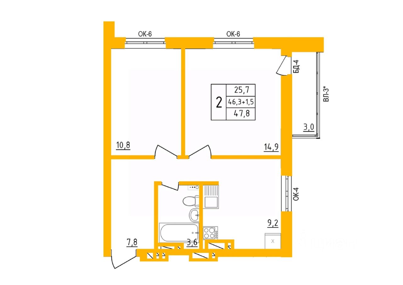 Продаётся 2-комнатная квартира в строящемся доме (литер 9), срок сдачи: II-кв. 2027, общей площадью 47.4 кв.м., на 23 этаже. Жилой комплекс "Акварель" занимает обширную территорию в 25га на живописном изгибе реки "Уфа".
