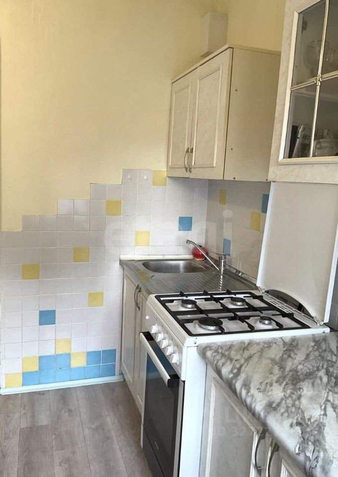 Кухня оформлена плиткой и декоративной штукатуркой. Установлена газовая плита.