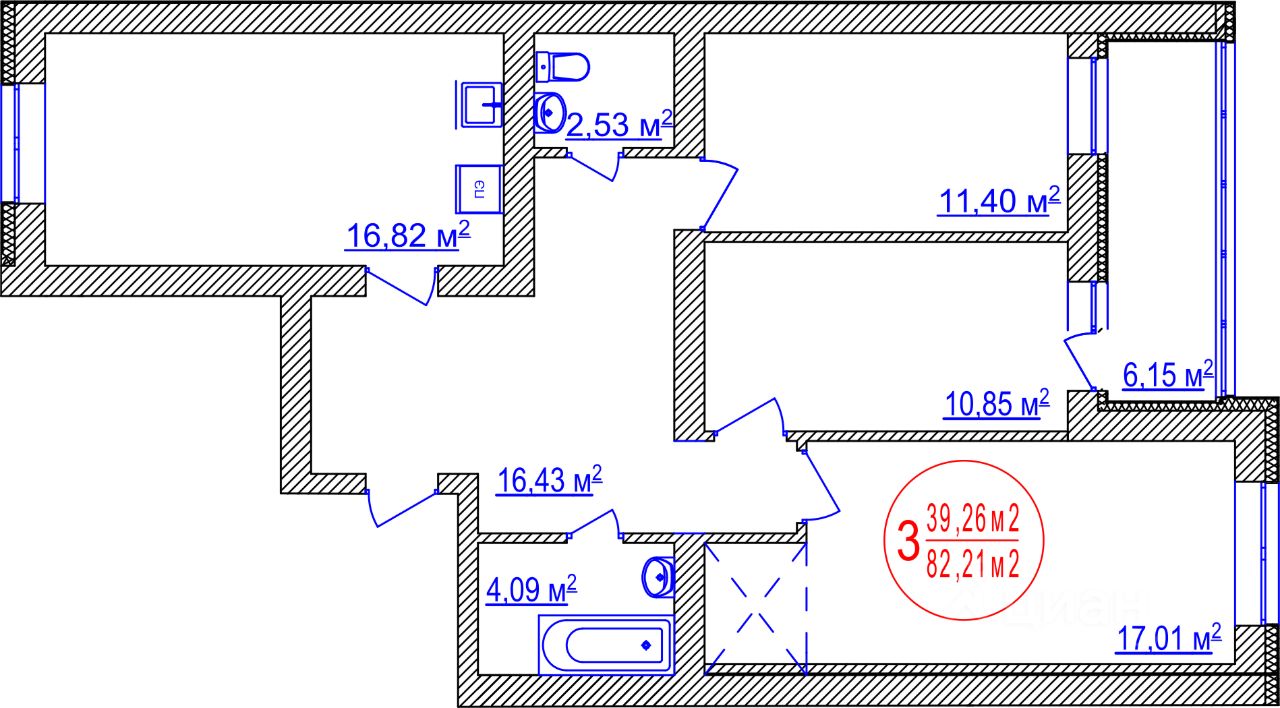 Продаётся 3-комнатная квартира в строящемся доме (Литер 2), срок сдачи: I-кв. 2026, общей площадью 82.21 кв.м., на 2 этаже. Жилой комплекс "Семейный" находится в Ленинском районе города Уфа. По данным официального сайта в состав жилого комплекса входят два корпуса, на первых этажах которых располагаются офисные помещения.
