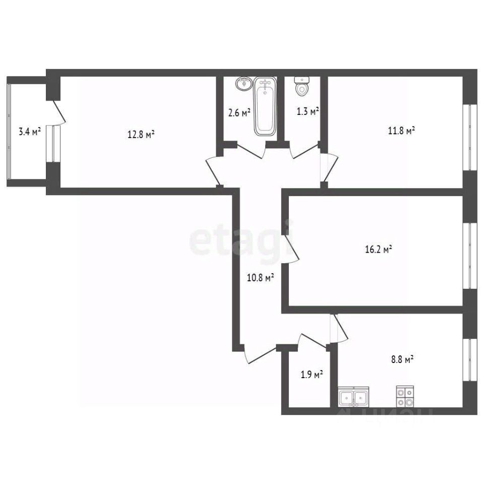 Санузел раздельный, ванная в кафеле. Мебель, вся техника, кондиционер остаются.