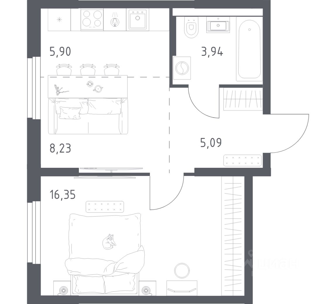 Квартиры без отделки. Доступность опции "отделка" и возможность комплектации мебелью и декором уточняйте у застройщика.