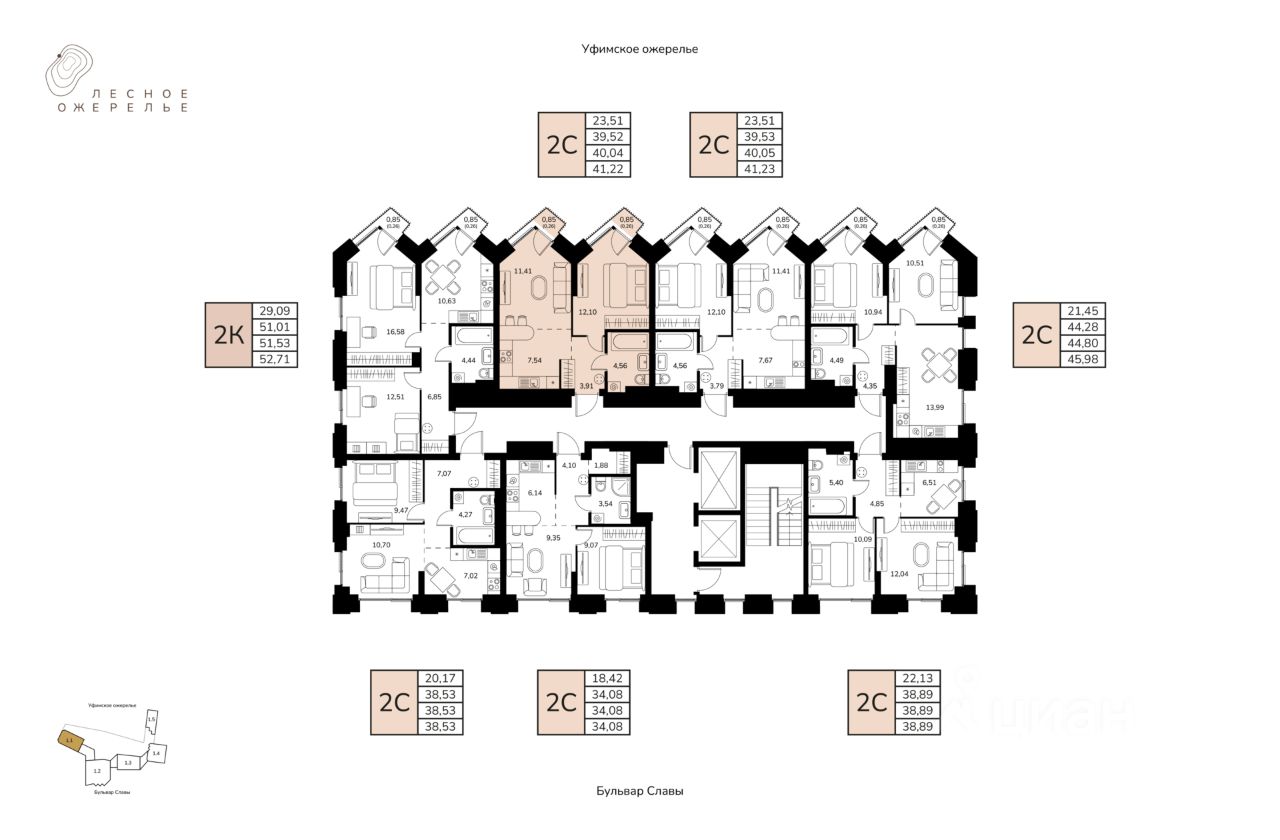 Литер 1, Секция 1. 8-й этаж 17- этажного жилого дома