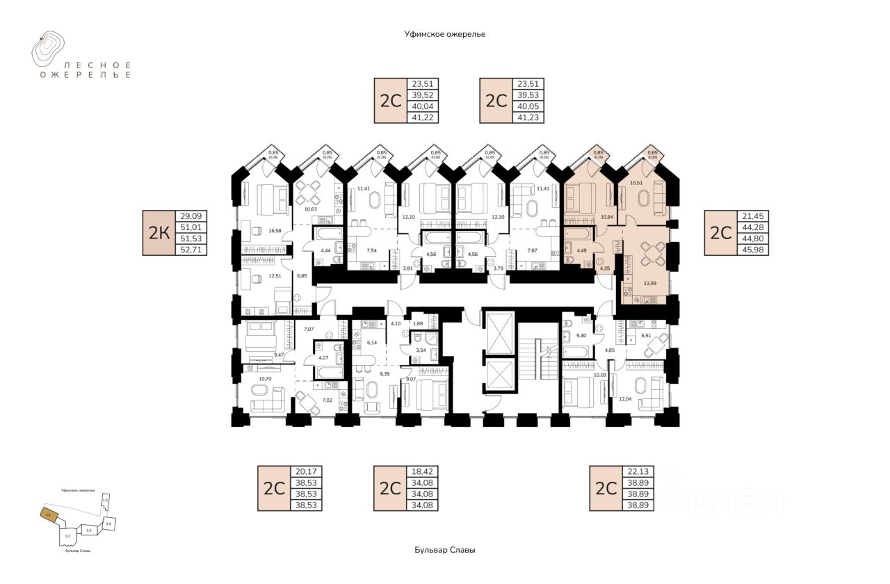 Литер 1, Секция 1. 10-й этаж 17- этажного жилого дома