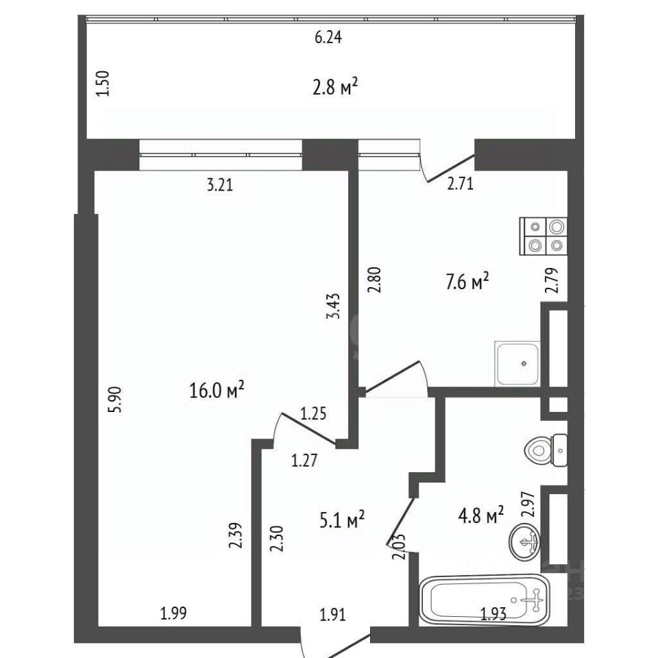 7,6 м²