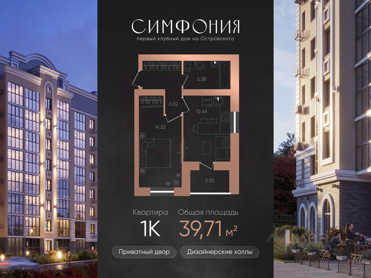 Продаётся 1-комнатная квартира в строящемся доме (ул. Островского, д. 125), срок сдачи: IV-кв. 2027, общей площадью 39.71 кв.м., на 6 этаже. Новый жилой комплекс "Клубный дом Симфония" от застройщика "КирпичХолдинг" расположен по адресу Россия, Башкортостан Республика, Город Октябрьский, Улица Островского, д. 125.