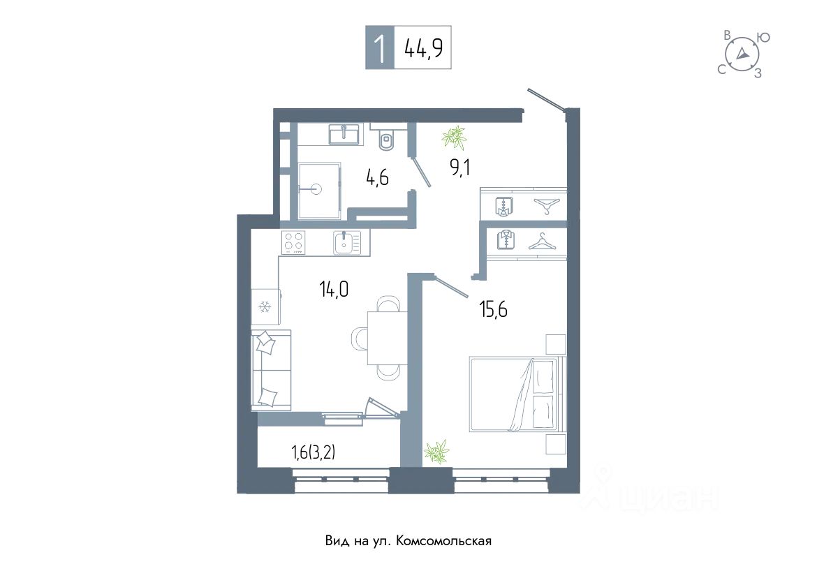 Продаётся 1-комнатная квартира в строящемся доме (дом 1), срок сдачи: III-кв. 2026, общей площадью 44.9 кв.м., на 12 этаже. Новый жилой комплекс "АУРУМ" от застройщика "СтроиТЭК" расположен по адресу Республика Башкортостан, Уфа, Комсомольская улица.