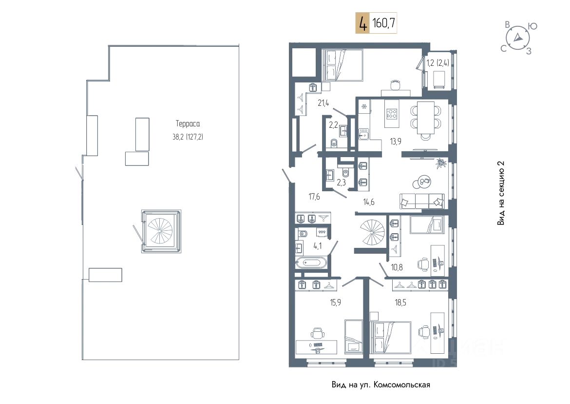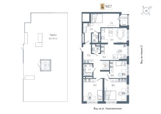 Продаётся 4-комнатная квартира в строящемся доме (дом 1), срок сдачи: III-кв. 2026, общей площадью 160.7 кв.м., на 21 этаже. Новый жилой комплекс "АУРУМ" от застройщика "СтроиТЭК" расположен по адресу Республика Башкортостан, Уфа, Комсомольская улица.