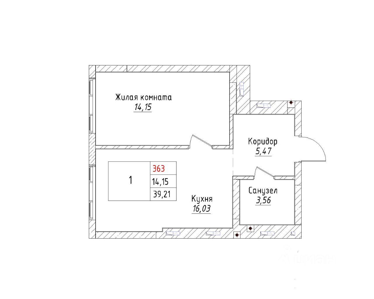 Ваша будущая 1 комнатная квартира 39,21 кв.м. с продуманной планировкой: