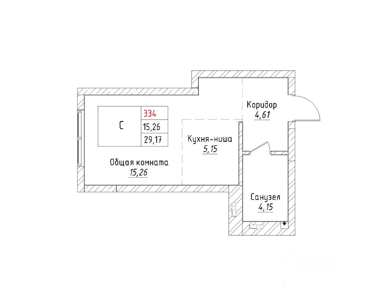 Общая площадь29,17 м²