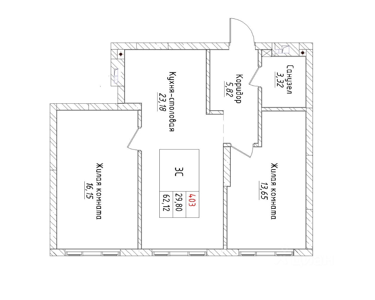 Ваша будущая 3 комнатная квартира 62,12 кв.м. с продуманной планировкой: