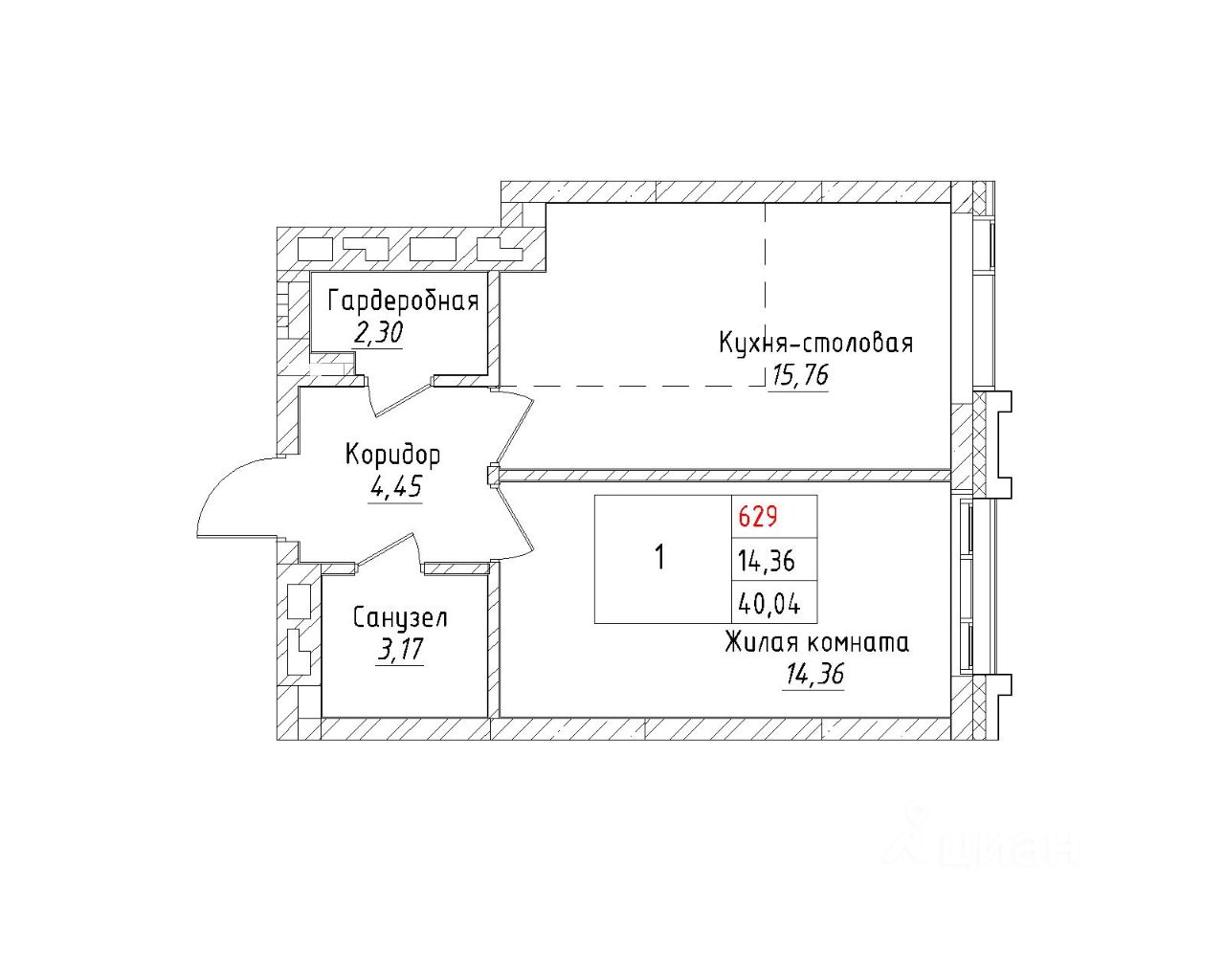 Ваша будущая 1 комнатная квартира 40,04 кв.м. с продуманной планировкой: