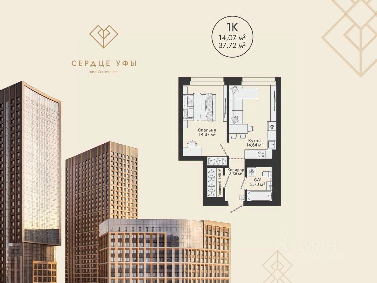 Ваша будущая 1 комнатная квартира 37,72 кв.м. с продуманной планировкой: спальня — 14,07 кв.м. кухня-гостиная — 14,64 кв.м. прихожая — 3,36 кв.м. санузел совмещенный — 3,7 кв.м. высота потолков — 2,7 кв.м. отделка — предчистовая Успейте купить по выгодным ценам на старте продаж! Подберем лучшую программу покупки для вас: Семейная ипотека IT-ипотека Военная ипотека Стандартная ипотека Готовая жизнь "здесь и сейчас": Потолки до 3 м Паркинг — более 800 машиномест, в том числе подземные, надземные и гостевые места Закрытый двор, охрана, видеонаблюдение по периметру и в подъездах 237 кладовых Площадки для выгула собак Воркаут-зоны и велодорожки Здесь формируется сообщество, где ценят надежность, статус и функциональность пространства для всей семьи. ЖК "Сердце Уфы" — место "не в центре", а в сердце Уфы. Здесь вы сохраните связь с природой и любовь к активному отдыху и будете пользоваться всеми преимуществами городской и транспортной инфраструктуры. Транспортная доступность: 5 минут до проспекта Салавата Юлаева 15 минут до центра города 5 минут пешей прогулки до ближайших остановок 12 минут до выезда из города Можно за 5 минут доехать до зеленого массива при ул. Рихарда Зорге и лесопарка за ул. Менделеева с горнолыжным склоном и трассой для беговых лыж. Еще ближе — до зоны тропы здоровья "Театральная". "Сердце Уфы" — центр притяжения вашей жизни. Все важное для семьи — в пешей доступности. От детского развития до спорта премиум-класса. Это место для динамичного ритма жизни в режиме многозадачности семьи. Дом находится в районе с развитой социальной инфраструктурой. В пешей доступности: детские сады, школы поликлиники, аптеки, медцентр магазины, ПВЗ фитнес-клубы, спа, салоны красоты, рестораны До ТЦ "Планета" — 4 минуты на авто. Успейте оформить сделку по выгодной цене на старте продаж. Приходите в наш офис продаж на чашечку кофе, чтобы лично узнать все детали и забронировать квартиру вашей мечты. Напишите или позвоните нам, чтобы назначить встречу!
