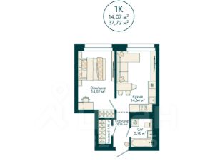 Общая площадь37,72 м²