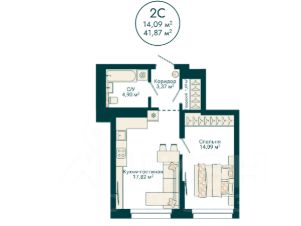 Ваша будущая 2 комнатная квартира 41,87 кв.м. с продуманной планировкой: