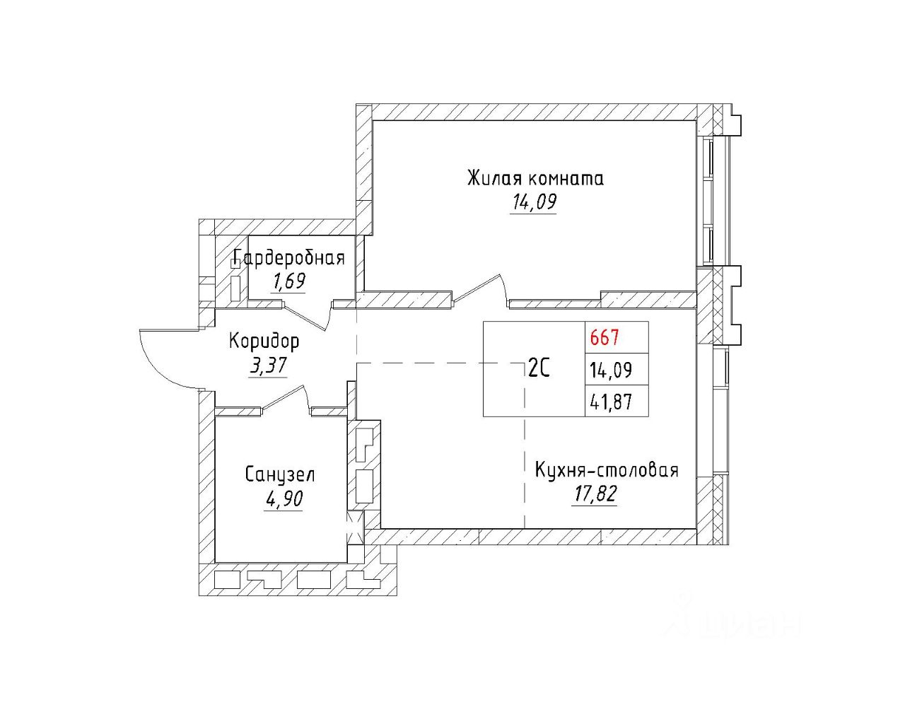кухня-гостиная — 17,82 кв.м.