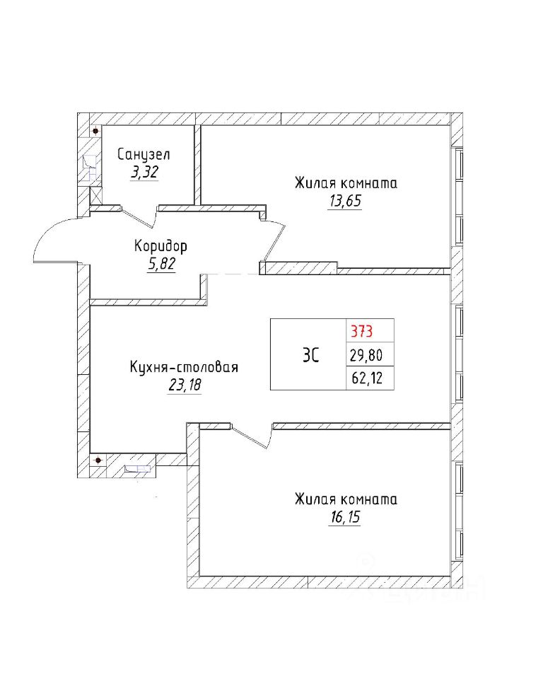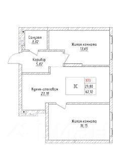 Ваша будущая 3 комнатная квартира 62,12 кв.м. с продуманной планировкой: