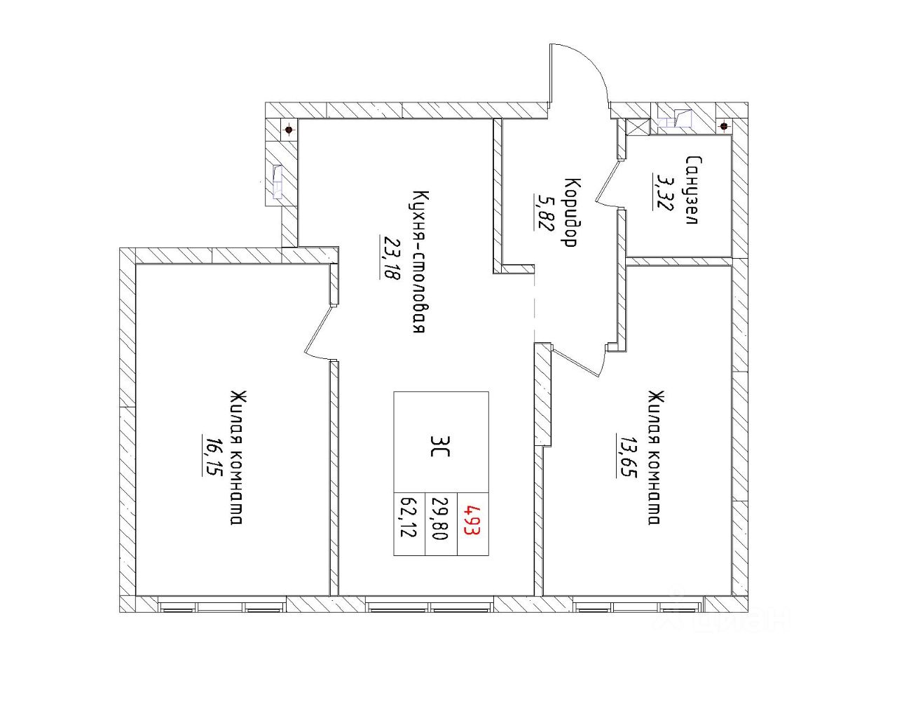 Ваша будущая 3 комнатная квартира 62,12 кв.м. с продуманной планировкой: