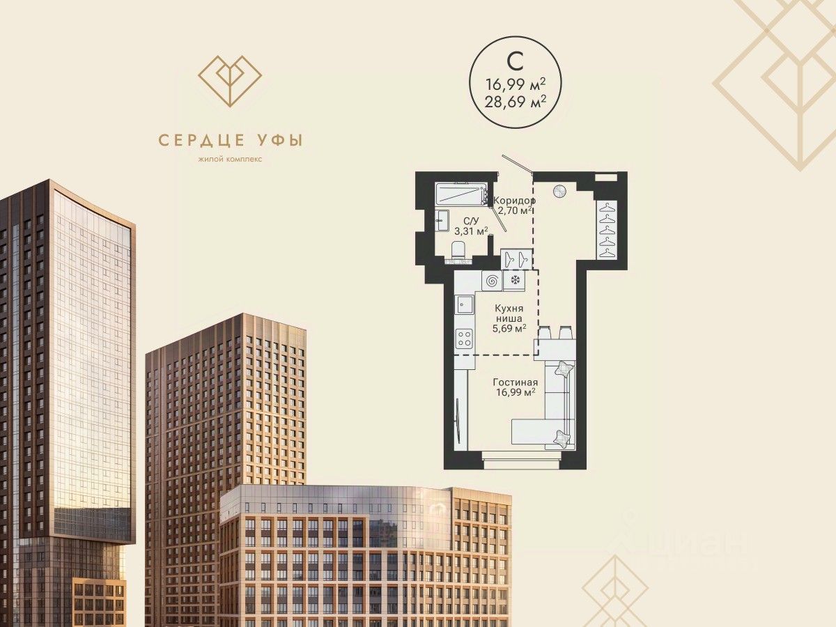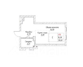 Ваша будущая студия 28,69 кв.м. с продуманной планировкой: